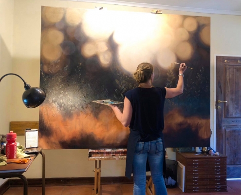 Nicole’s primary choice of medium is oil on canvas. Inspired by spirituality in nature, the beauty of her natural surroundings, birds, flora, fauna and emotional connections, she creates from a deep sense of calm. She focuses on movement, light, pattern, emotion, the interpretation of colour and flow of composition.