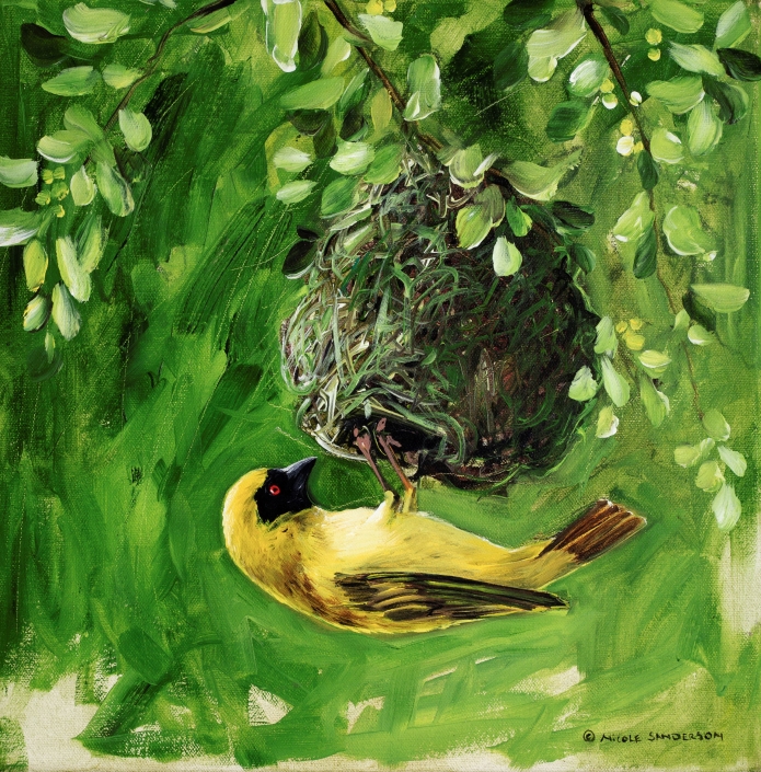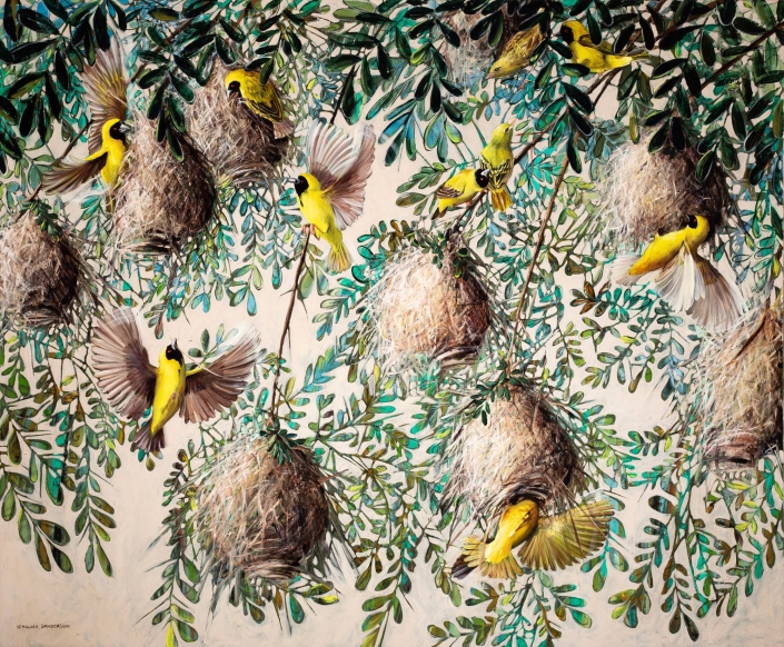 “White Browed Sparrow Weavers Nesting” 90 cm x 60 cm