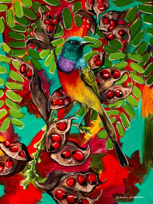 ‘Toppies in the Coral Tree’ – 40cm x 50cm