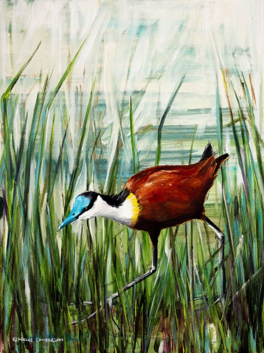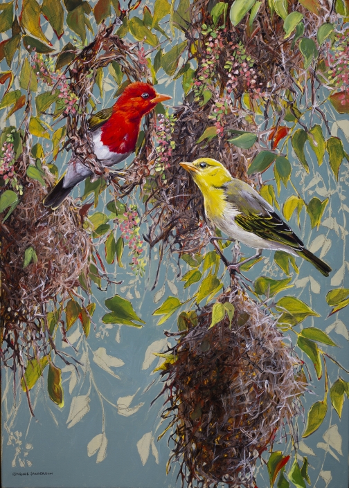‘A Pair of Red Headed Weavers’ 53cm x 70cm