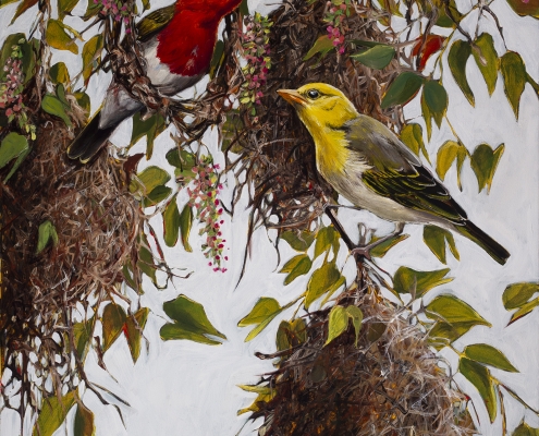 ‘A Pair of Red Headed Weavers’ 53cm x 70cm